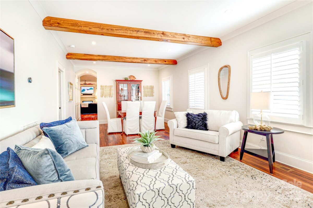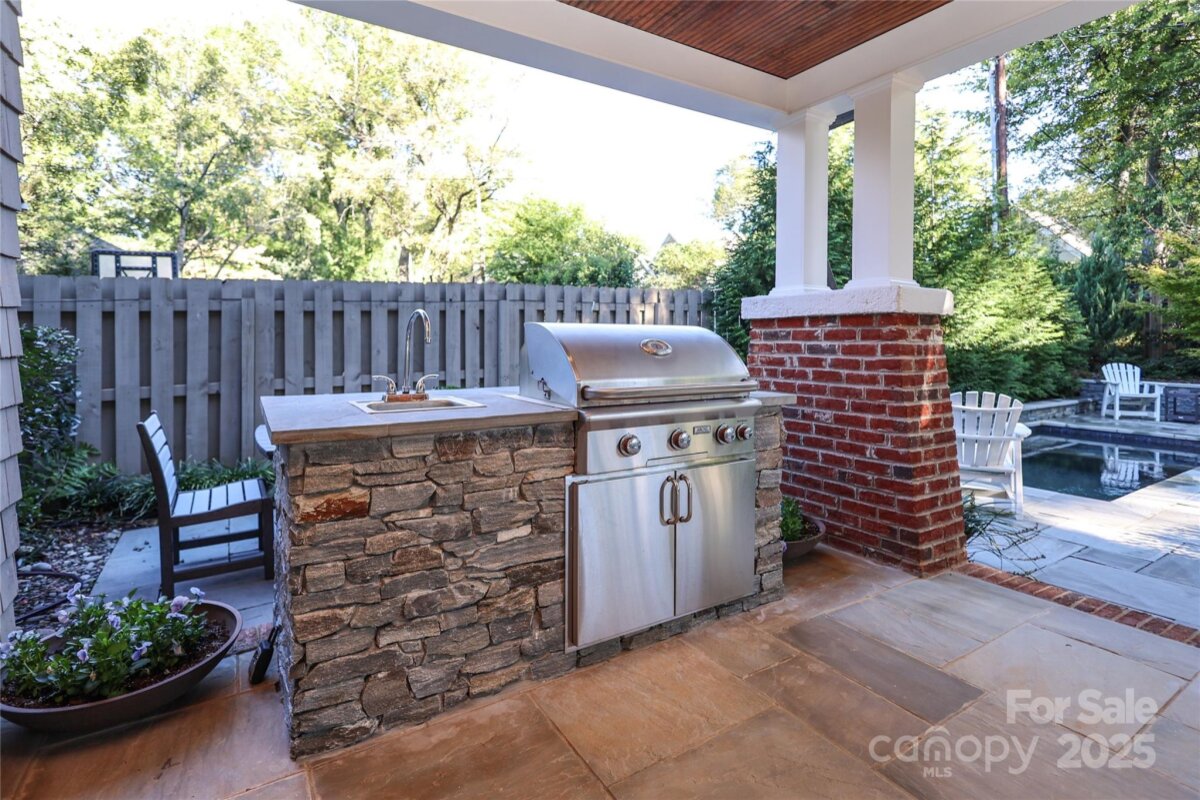 Welcome home to 719 E Tremont, located in the historic district of Dilworth. Enjoy the beautiful covered porch with a gas lantern, perfect for watching neighbors stroll along the tree-lined streets. This charming and fully updated bungalow features 4 bedrooms and 2.5 bathrooms. The spacious primary suite is located on the main level and includes a large bathroom and an even larger walk-in closet with custom shelving. The kitchen boasts a generous island and commercial-style stainless steel appliances, with an open-concept layout ideal for hosting and entertaining. The main level offers two flexible living or dining spaces, along with a large mudroom and drop zone. Whether you're looking for formal areas or casual living, this home fits the bill. Upstairs, you’ll find three additional bedrooms, a full bath, and a bonus space that can serve as an office, playroom, or oversized finished storage. Outdoor living is equally impressive, featuring a large covered parking area with storage, a rear covered porch with built-in kitchenette, and a custom cocktail pool. The low-maintenance backyard and ample parking make this an urban oasis. Don’t miss the wine cellar — or the Dilworth speakeasy! The seller has made numerous upgrades including the pool, hardscaping, plantation shutters, new gas line, indoor/outdoor fireplace with tile surround, gutters, electric gate, professional basement waterproofing with new sump pump, and a water filtration system. Super convenient location — just a couple blocks from dining, entertainment, and the light rail. Right in the heart of it all!